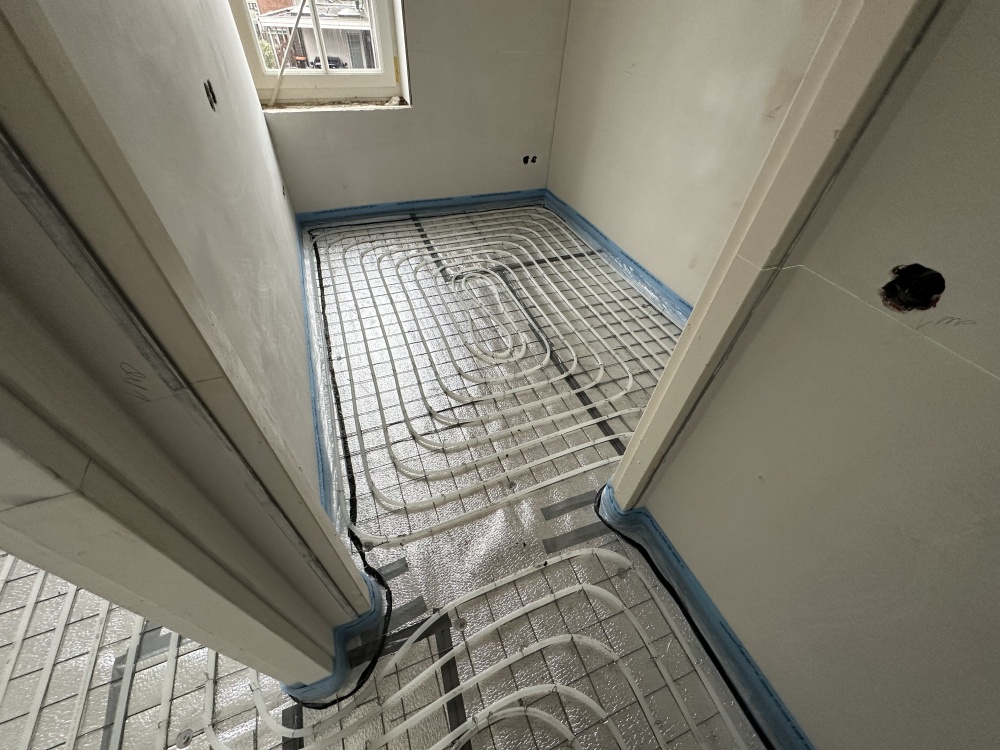 Soms moet je ‘out of the box’ denken. In ons geval betekend dit dat wij soms onze vertrouwde omgeving moeten inruilen voor de big city. Voor een van onze vaste opdrachtgevers hebben wij een mooi project in Baarn mogen voorzien van vloerverwarming. Het bestaande pand, voorheen een winkel, is omgebouwd tot woning. De gehele woning, 3 verdiepingen, is voorzien van reflecterende folie en hierna is de vloerverwarming op de gegalvaniseerde stalen netjes geknoopt. Waarna de woning is voorzien van een lichtgewicht dekvloer (geschikt voor houten constructievloeren). De woning is verder volledig duurzaam gemaakt en hiervoor hebben wij dan ook onze composieten verdeler, de SOLID, toegepast.